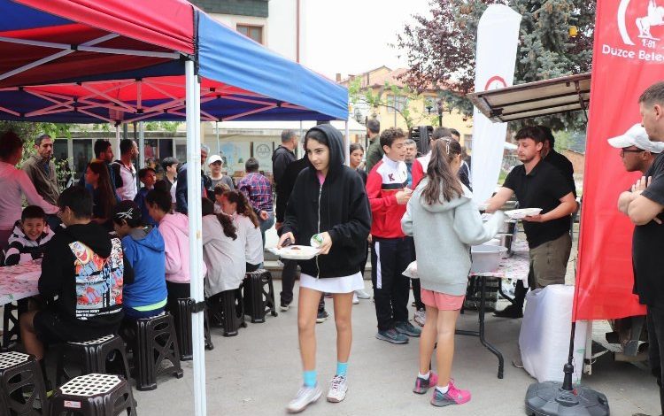 Yapılan gezilerin ardından tarihi Milattan Önce 3. Yüzyıla uzanan ve kazı çalışmalarının devam ettiği Antik Kentteki tiyatro alanında sporculara Düzce Belediyesi tarafından tarihi Konuralp Pilavı ikramı edildi.