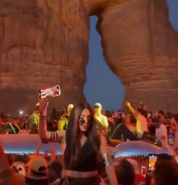 Medain Salih’in, Suudi Arabistan’ın Medine Bölgesi’nde yer alan bir UNESCO Dünya Mirası sit alanı olması, parti imgelerinin yarattığı rahatsızlığı artırdı.