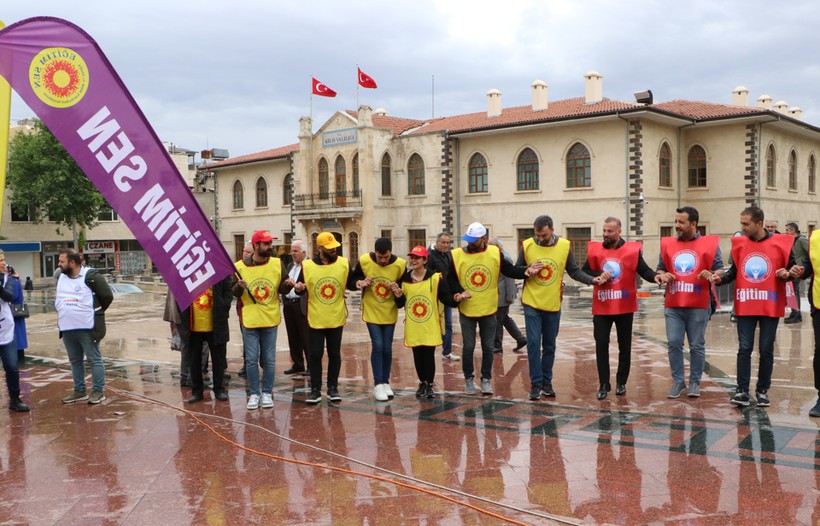 Kilis’te 1 Mayıs Emek ve Dayanışma Günü münasebetiyle Cumhuriyet Caddesi’nde bir ortaya gelen Kamu İşçileri Sendikaları Konfederasyonu (KESK) üyeleri ellerinde taşıdıkları döviz, afiş ve pankartlarla sloganlar atarak Cumhuriyet Meydanı’na kadar yürüdü.