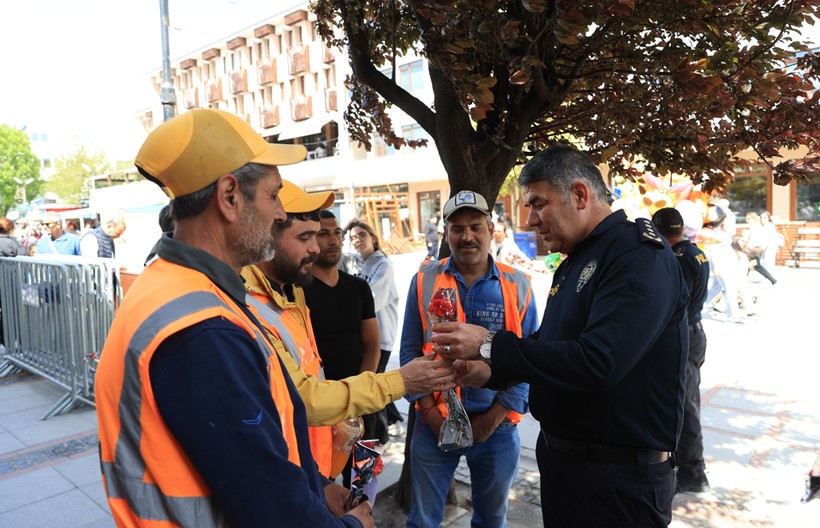 Edirne Emniyet Müdürü Onur Karaburun, 1 Mayıs Emek ve Dayanışma Günü hasebiyle personellere çiçek armağan etti.