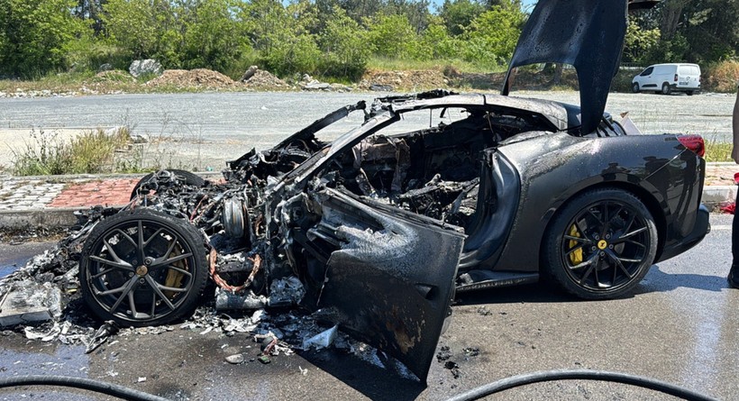 Lüks arabadaki yangın, etraftaki vatandaşlar tarafından cep telefonu kamerasıyla kaydedildi. İmgelerde, alevlerin süratle yayılarak aracı büsbütün sardığı ve Ferrari’nin kısa müddette enkaz haline geldiği görüldü.
