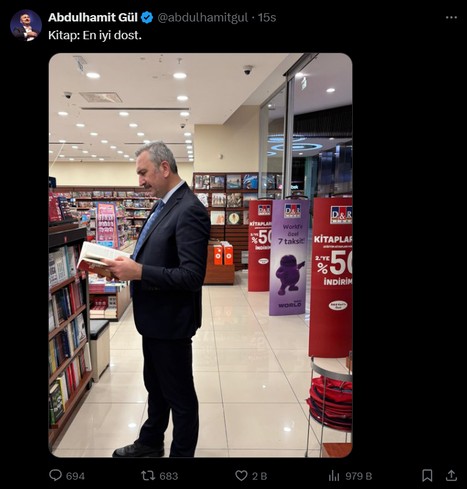 Eski Adalet Bakanı Abdulhamit Gül boykot edilen kitapçıya giderek Doğan Avcıoğlu’nun Türkiye’nin Tertibi kitabını incelerken fotoğraf çektirip “Kitap: En güzel dost” iletisiyle paylaştı.