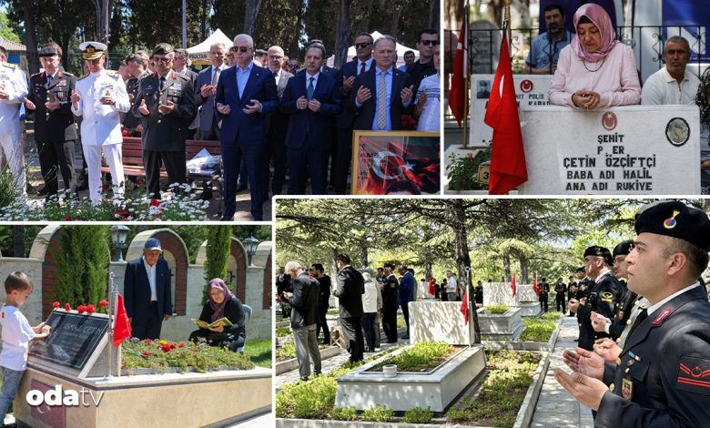 İzmir’de şehit aileleri, Kurban Bayramı arifesinde yakınlarının mezarlarına yaptıkları ziyarette duygusal anlar yaşadı. Vilayet Emniyet Müdürlüğünce Işıkkent Polis Şehitliği’nde düzenlenen programda, şehitler için Kur’an-ı Kerim okundu, dua edildi.