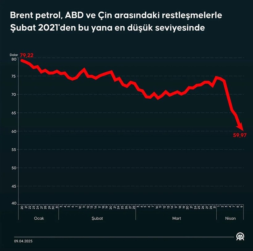 Brent petrol, 60 doların altına inerek 4 yılın en düşük düzeyini gördü.