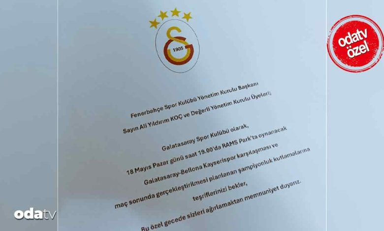 “Galatasaray idaresi, Ali Koç ve İdaresini Kayserispor şampiyonluk maçına ve maç sonunda planlanan şampiyonluk kutlamalarına davet etmiş.”