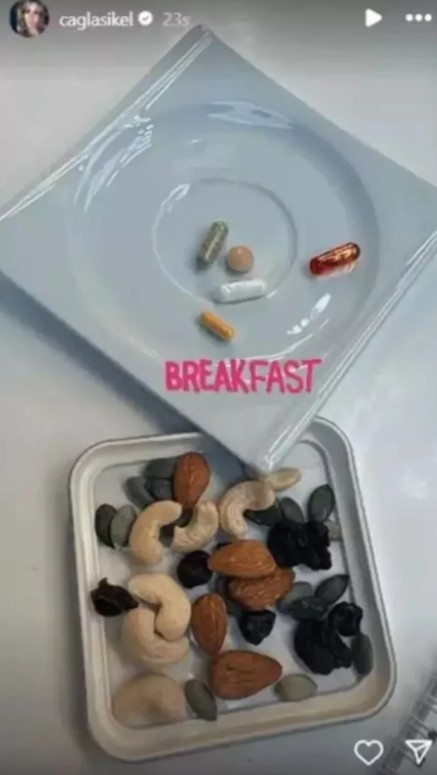 Geçen ay Instagram’da paylaştığı kuruyemiş ve vitaminlerden oluşan kahvaltı tabağıyla dikkat çeken Çağla Şıkel, “Sağlıksız” tenkitlerine karşılık verdi.