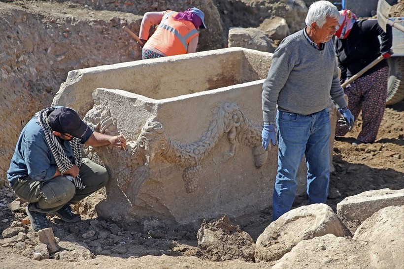 Çalışmaların geçen yıldan itibaren Geleceğe Miras Projesi kapsamında yürütüldüğünü belirten Söğüt, “Bu projelerden birisi de Agora’da (etrafında kamu binalarının bulunduğu kentle ilgili politik, dini, ticari her türlü faaliyetin gerçekleştiği yapı) yürüttüğümüz hafriyatlar. Agorada Geç Antik Çağ Devrini kazıyoruz. Bu alanda yürüttüğümüz hafriyatlar sırasında daha evvel Nekropol’den (kentin mezarlığı) alınıp buraya getirilmiş ve 2 bin yıl öncesine ilişkin girlandlı (meyve, çiçek ve yapraklardan oluşan çelenk) bir lahit bulduk” dedi. Söğüt, lahdin antik kentin lahit koleksiyonu içeresinde en hoş örneği oluşturduğuna dikkati çekerek, antik devirde kentte lahitlerin üretildiğini hatta öbür yerlere gittiğine dair bilgiler olduğunu vurguladı.