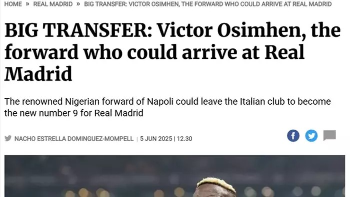 İspanyol Fichajes’in haberinde “Victor Osimhen, önümüzdeki dönem için hamle bölgesini güçlendirmeyi öncelikli gaye olarak belirleyen Real Madrid’in gündemine bomba üzere düştü” tabirleri kullanıldı.