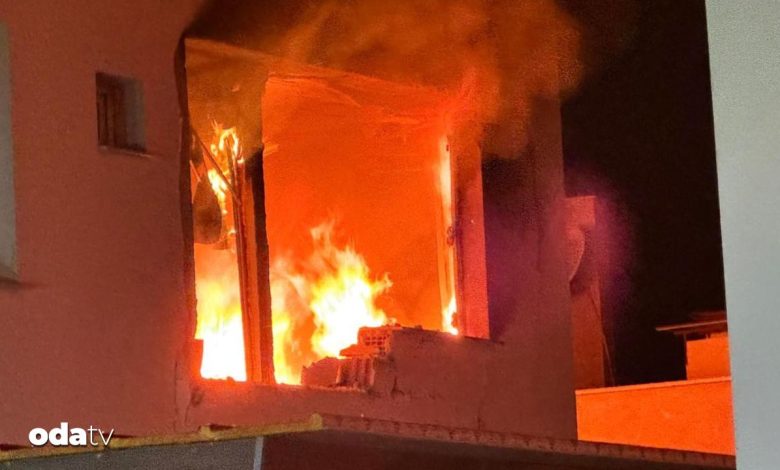 Patlamayla birlikte alev alan konut, itfaiyenin müdahalesiyle söndürüldü.