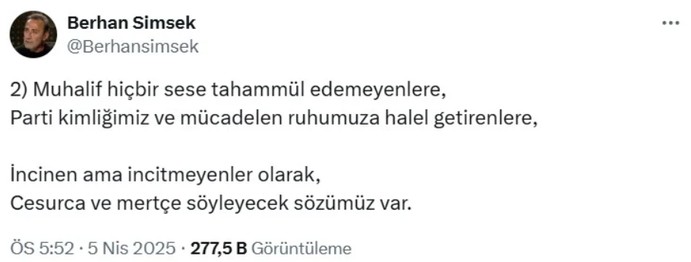 Kurultay arifesinde X paylaşımı: