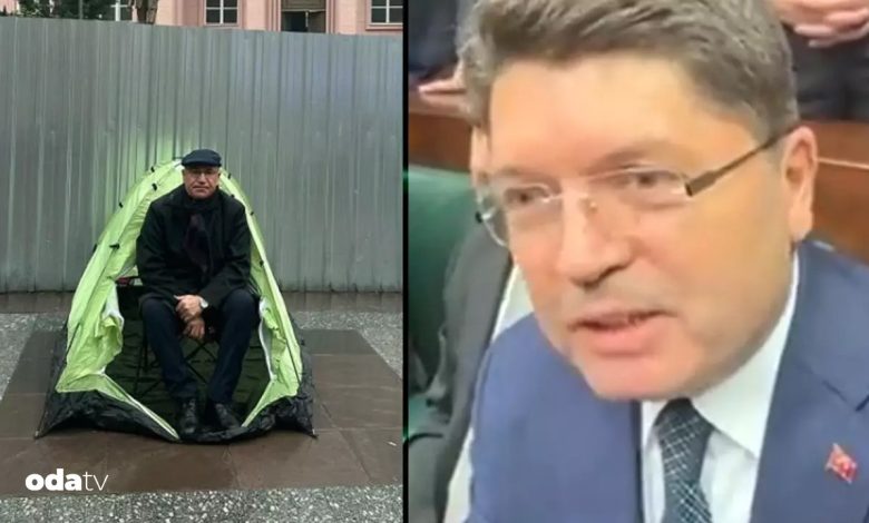 “Mahmut Bey Adalet Bakanlığı binası önünde değil yanlış bir yerde aksiyon yapmış. Yargıtay binasını restore ediyoruz. Orası Adalet Bakanlığının yeni hizmet binası olacak. Bizim bina art tarafta. Mahmut Beyefendisi o nedenle göremedik. Mahmut Bey’in biz o yağmurun altında ıslanmasını muhakkak istemeyiz. Direkt makama gelseydi, biz orada ona çay da söylerdik, yemek de söylerdik. Haber verseydi Bakanlığa davet ederdim”