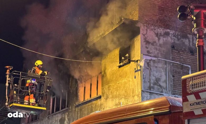 Balıkesir Akıncılar Mahallesi Yağhane Sokak’ta alt katı depo olarak kullanılan 3 katlı binada şimdi bilinmeyen nedenle yangın çıktı.