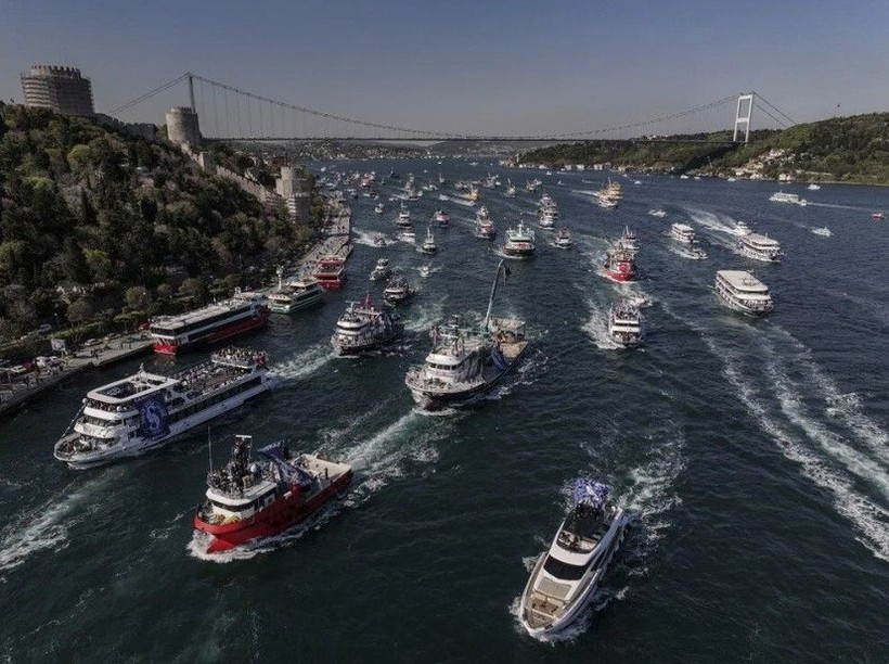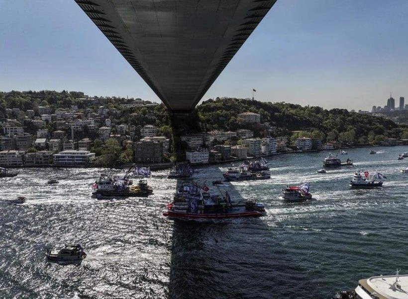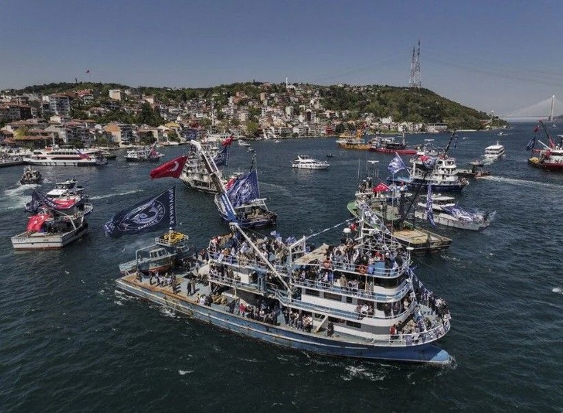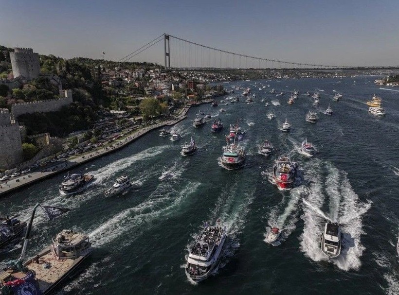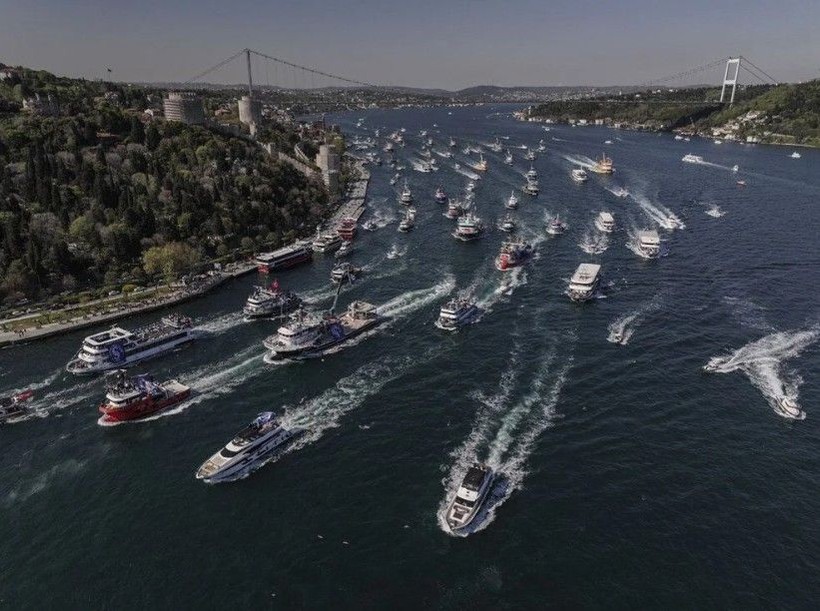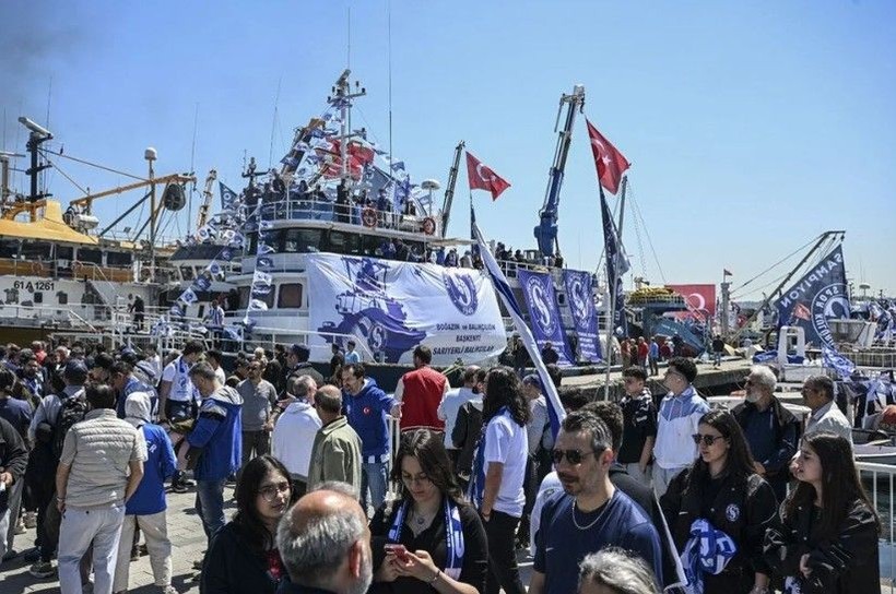 Sonrasında teknelere geçen taraftarlar, İstanbul Boğazı’nda cins atarak şampiyonluk sevincini yaşadı.