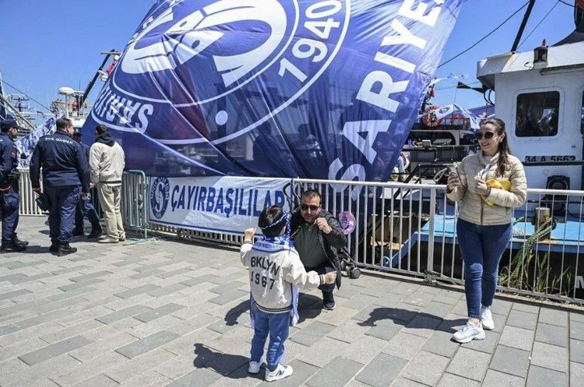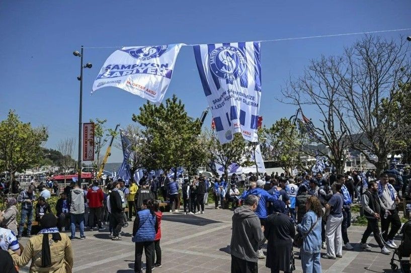 Kutlama aktiflikleri için Sarıyer Meydanı’nda toplanan lacivert-beyazlı taraftarlar, tezahürat ve bayraklarla gruba dayanak verdi.