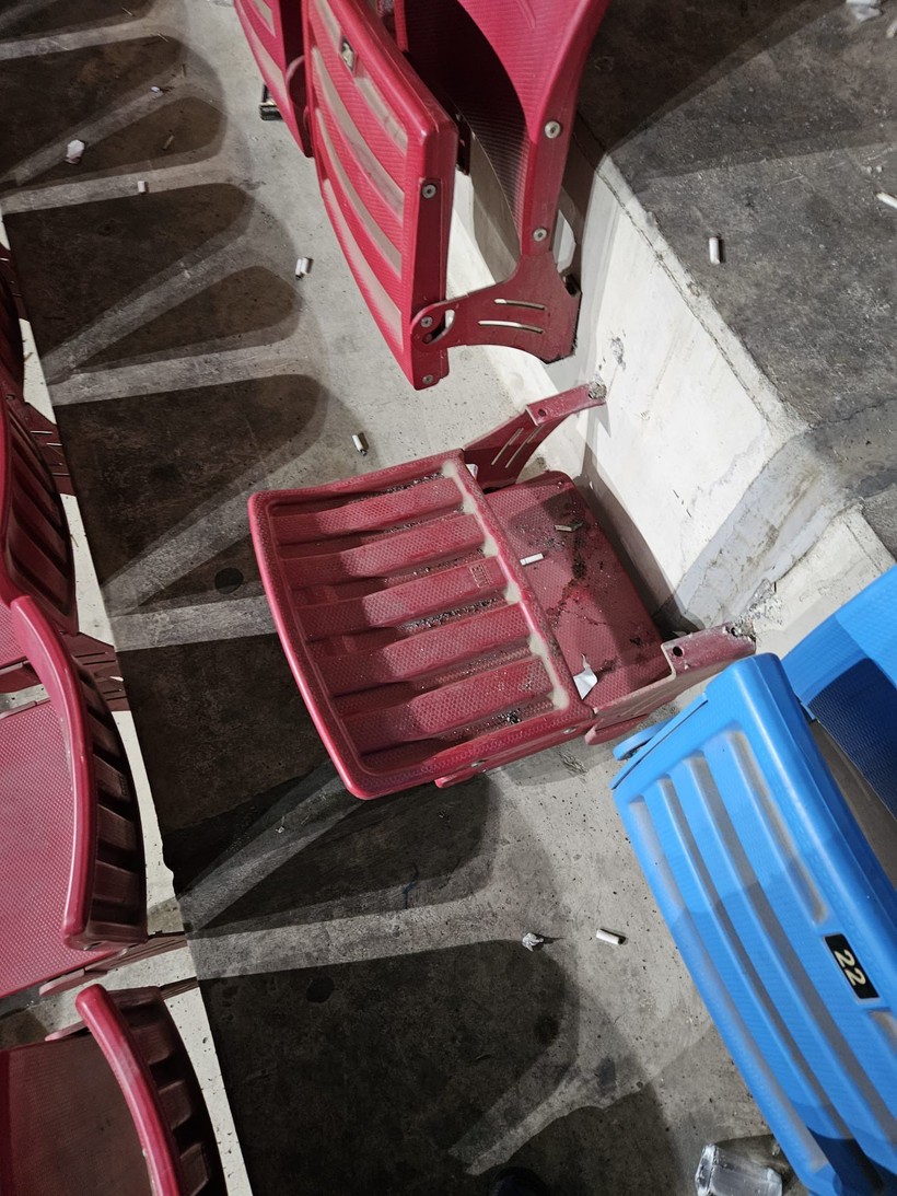 61Saat’in aktardığı habere nazaran deplasman tribününde yapılan incelemelerde, çok sayıda koltuk ve demirin kırıldığı tespit edilirken, stat dışındaki birtakım alanlar ve lavaboların da kullanılamaz hale getirildiği görüldü.