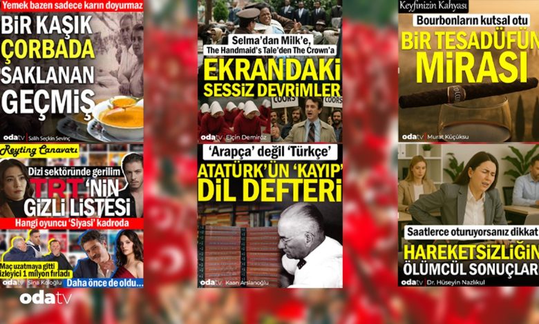 Her hafta sonu olduğu üzere bu hafta sonu da Odatv muharrirleri, çeşitli hususlar üzerinden okuyucularıyla buluştu. Film-dizi kesimi, sıhhat, dil-kültür alanlarına çeşitli pencerelerden ışık tutan muharrirlerin öne çıkan bu yedi yazısını okumadan haftaya başlamayın.