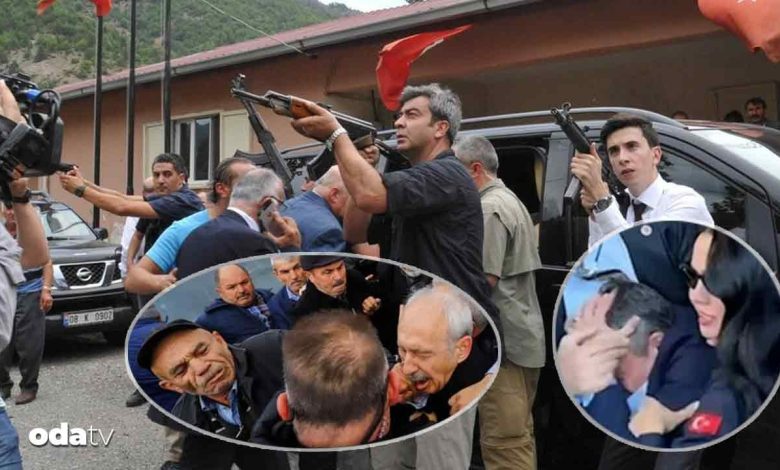 Bu sırada “Şehitler ölmez vatan ayrılamaz, kahrolsun PKK” sloganları atan bir küme Kılıçdaroğlu’na yumruk ve tekmelerle saldırdı. Osman Sarıgün isimli vatandaş Kılıçdaroğlu’na yumruk attı.