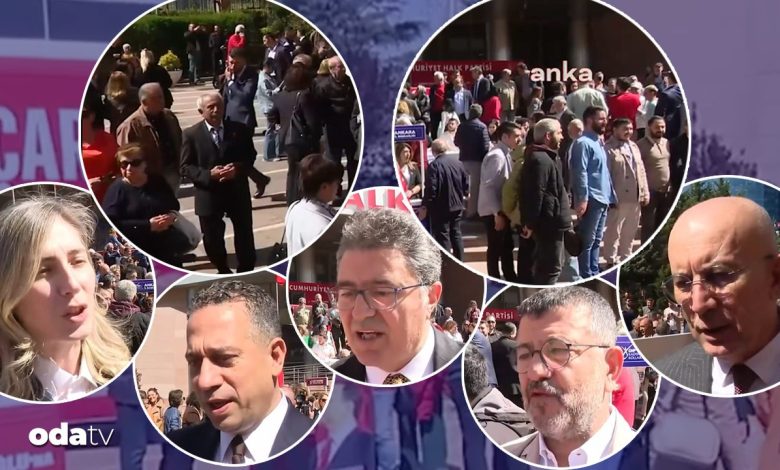 CHP Ankara İl Başkanı Ümit Erkol, ”Bugün, ‘Partiyle dayanışmayı öne çıkaralım’ dedik. Partiye karşı birtakım taarruzlar var. ‘O hücumlara karşı duruşumuzu gösterelim’ dedik. Bugün daha çok partiyle dayanışma öne çıkacak” biçiminde konuştu.