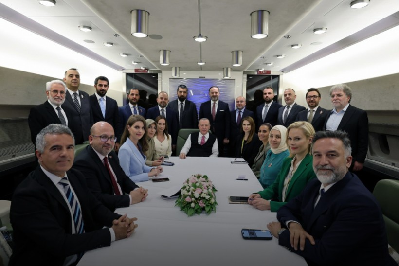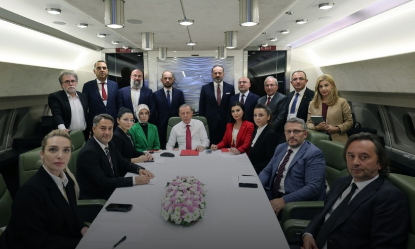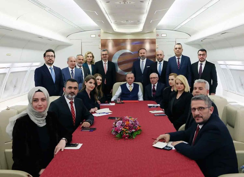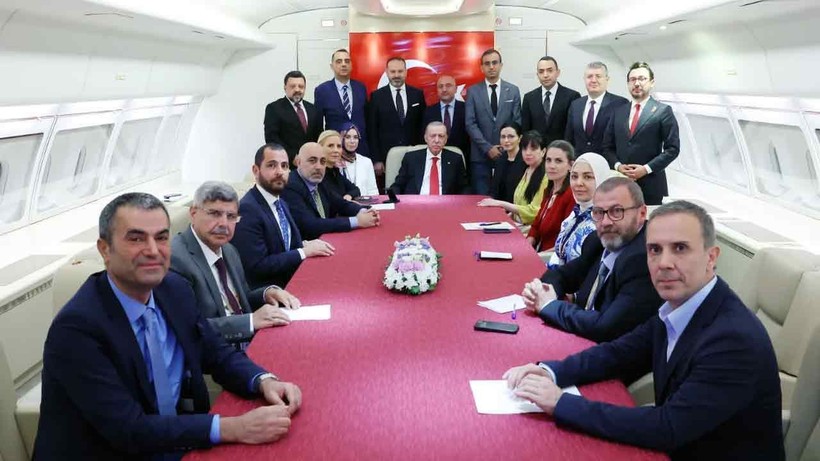 Aynı gün dönen Erdoğan’a uçakta 23 gazeteci eşlik etti. Erdoğan, ziyaret dönüşü uçakta gündeme ait değerlendirmelerde bulundu ve gazetecilerin sorularını yanıtladı.
