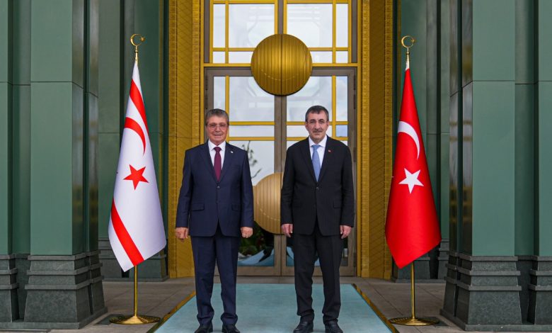 Cumhurbaşkanı Yardımcısı Cevdet Yılmaz, KKTC Başbakanı Ünal Üstel ile bir ortaya geldi.