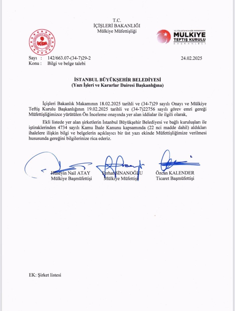 Gökhan Günaydın yaptığı paylaşımda, “Yalnızca bu örnek bile yürütülen soruşturmanın siyasi içeriğini ve maksadını göstermesi açısından kâfi. Fakat bununla yetinmeyelim, inceleme ve kontrol basamağına ait ibretlik bir örnek daha verelim. Bu sefer İBB’de kontrolde olan mülkiye müfettişleri, 24 Şubat 2025 tarihli yazı ile İBB’den 14 şirketin ihale evraklarını istiyorlar.