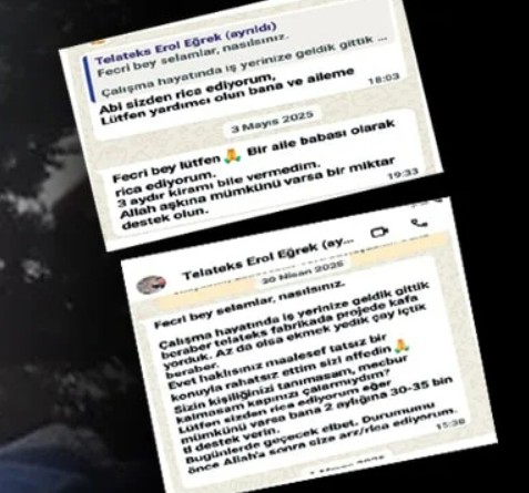 “Fecri bey selamlar, nasılsınız. Çalışma hayatında iş yerinize geldik, gittik. Birlikte Telateks fabrikada projede baş yorduk. Az da olsa ekmek yedik çay içtik bir arada. Evet haklısınız maalesef tatsız bir hususla rahatsız ettim sizi affedin. Sizin kişiliğinizi tanımasam, mecbur kalmasam kapınızı çalar mıydım? Lütfen sizden rica ediyorum şayet mümkünü varsa bana 2 aylığına 30-35 bin TL dayanak verin. Bugünlerde geçecek şüphesiz. Durumumu evvel Allah’a sonra size arz/rica ediyorum”