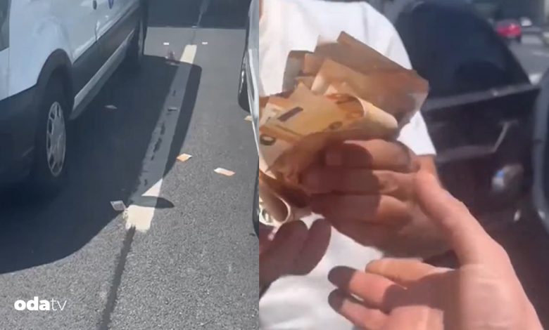 İstanbul’un Şirinevler semtinde farklı bir olay yaşandı. Kimliği bilinmeyen bir kişi, E-5 Karayolu’na yüklü ölçüde Euro saçtı. Paraların neden yola atıldığı şimdi bilinmezken, birtakım şoförler araçlarını durdurarak dağılan nakitleri toplamaya başladı. O anlarda, bir şoförün Jaguar marka araba kullanan arkadaşına “Seri numaralarını al, varlıklı olduk” dediği duyuldu. Yaşananlar etraftaki bir vatandaş tarafından saniye saniye kaydedildi.
