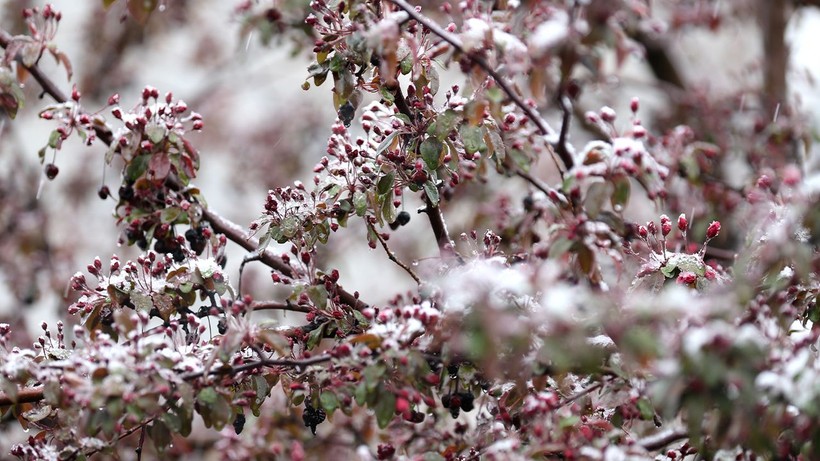 İlkbahar mevsiminin son ayında, araçların üzeri ve çatılar kısmen beyaza büründü.