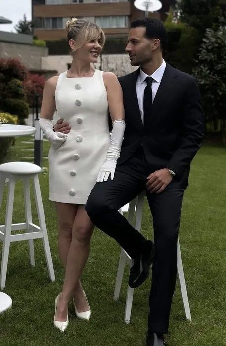 Beyaz kısa bir elbise tercih eden Eda Erol, beyaz eldivenleri ile de usulünü konuşturdu.