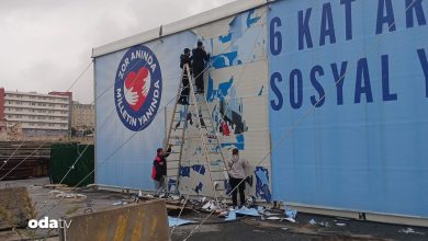 Ekrem İmamoğlu’na ilişkin görsellere yönelik yasak kararı doğrultusunda Yenikapı’daki İBB çadırının dış yüzeyindeki bir görsel daha kaldırıldı. Polislerin talebi üzerine,…
