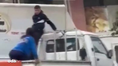 İstanbul Esenyurt'ta bir market çalışanı bayan, marketin önündeki paletleri otomobilin kasasına yükleyen hırsızları engellemek için aracın kasasına atladı.