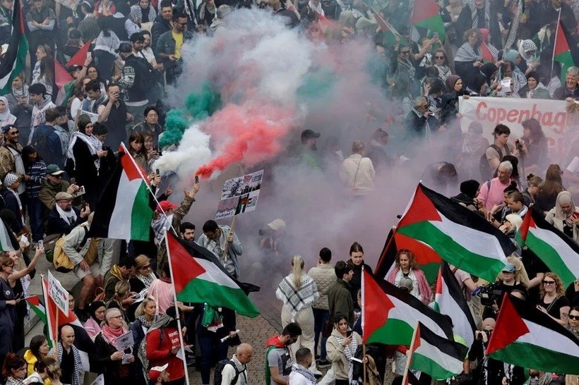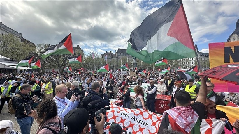 Tören için belediye binası önünde toplanan binlerce kişilik kalabalık ortasında çok sayıda Filistin destekçisi aktivist de yerini almıştı.