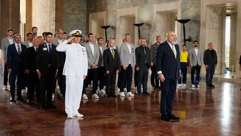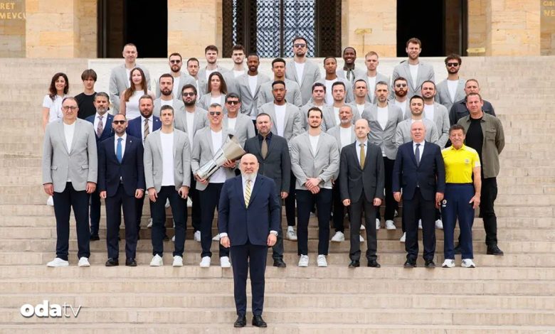 Ziyaretin sonunda sarı-lacivertli kafile, Anıtkabir merdivenlerinde EuroLeague kupasıyla birlikte hatıra fotoğrafı çektirdi.