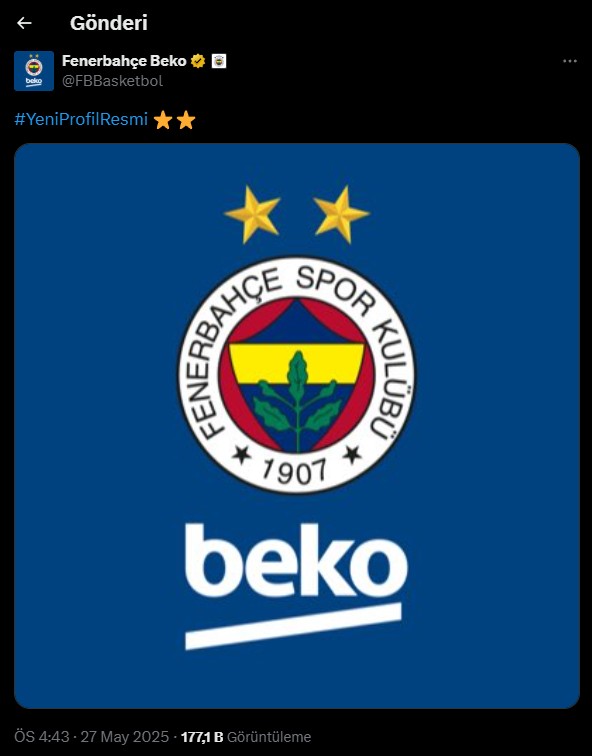 Tarihi zafer sonrası Fenerbahçe Beko, logosuna ikinci yıldızı işleyerek şimdiki logoyu toplumsal medya hesabından paylaştı.