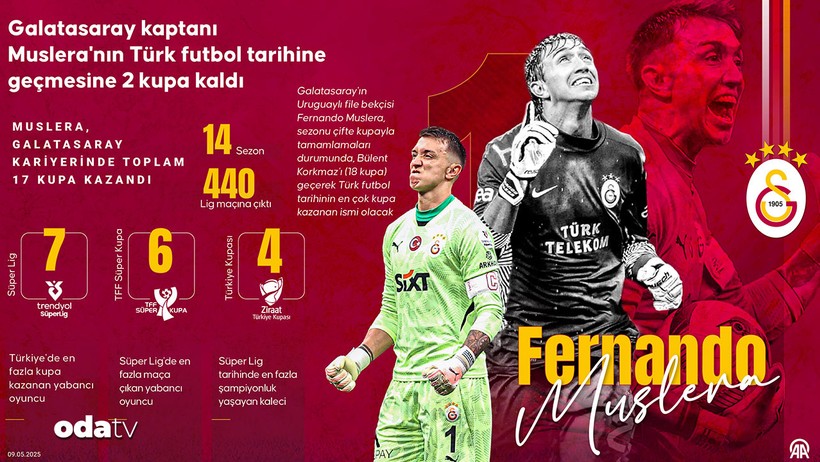 Muslera, memnun sona ulaşması halinde Süper Lig’de en fazla şampiyonluk yaşayan 4 futbolcudan biri olacak. 38 yaşındaki kaleci, Bülent Korkmaz, Suat Kaya ve FETÖ firarisi Hakan Şükür’ü yakalayacak.