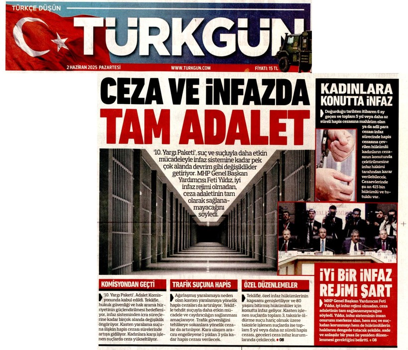 “Ceza ve infazda tam adalet” başlığıyla bahis manşette yer aldı.