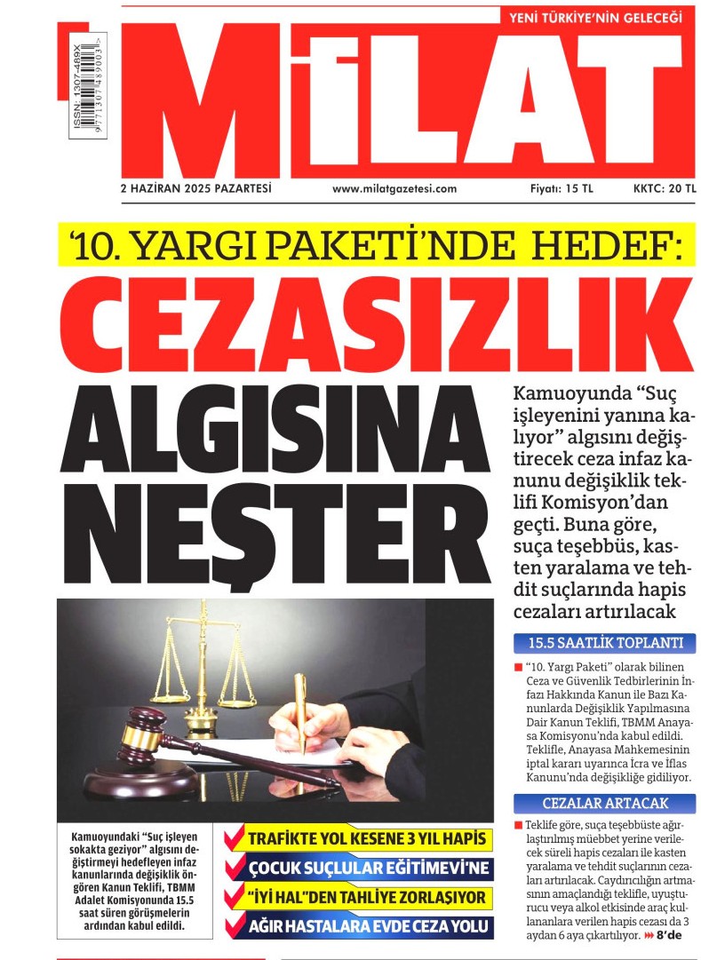 Gazetede “Cezasızlık algısına neşter” manşetiyle yer aldı.