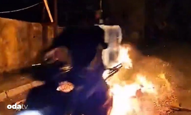 İstanbul Gaziosmanpaşa’da sokak ortasında ateş yakan gençler, motosiklet ile ateşin üzerinden geçti.