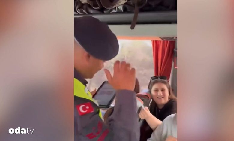 Koro üyeleri, midibüste Genel Bilgi Tarama (GBT) sorgulaması yapan jandarma çalışanına küçük bir konser verdi. O anlar, cep telefonu kamerasıyla kaydedildi.