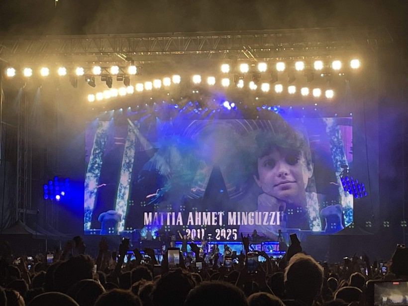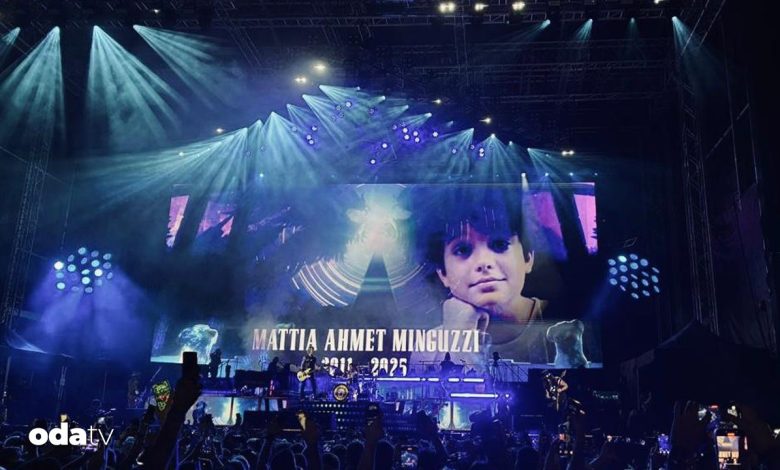 Ayrıca müzik çalınırken stadyumda kurulan dev ekranlara Mattia Ahmet Minguzzi’nin fotoğrafı yansıtıldı.