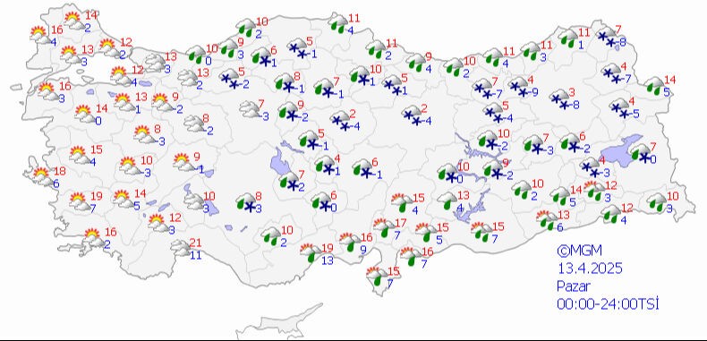 Hava sıcaklıkları mevsim normallerinin altında seyretmeye devam etse de, batı bölgelerden başlayarak kademeli bir artış gösterecek. Rüzgar, çoklukla kuzey taraflarından, doğu bölgelerde ise güneyden hafif ve vakit zaman orta şiddette esecek. Karadeniz’de batıdan, Doğu Anadolu’nun doğusunda güneyden, Akdeniz’in iç bölümleri ile İç Anadolu’nun güneyinde ise kuzeybatıdan kuvvetli ve yer yer kısa periyodik fırtına halinde (saatte 40-60 km) esmesi bekleniyor.