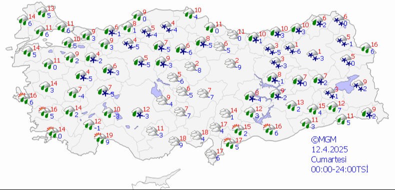 Öğle saatlerinden sonra karla karışık yağmur, yüksek bölümlerde ise kar yağışı bekleniyor. Sıcaklıklar -3°C ile 6°C ortasında değişecek.
