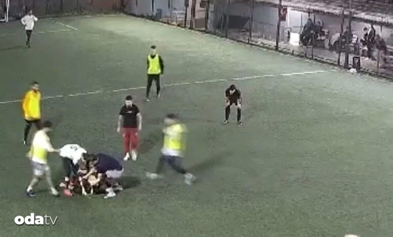 Olay, halı sahanın güvenlik kamerasınca kaydedildi.