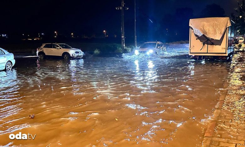 Büyükşehir Belediyesi grupları yollarda biriken suyun tahliyesi için çalışma yürütüyor.