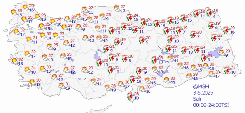 BÖLGESEL 3 HAZİRAN HAVA DURUMU VE SICAKLIKLAR