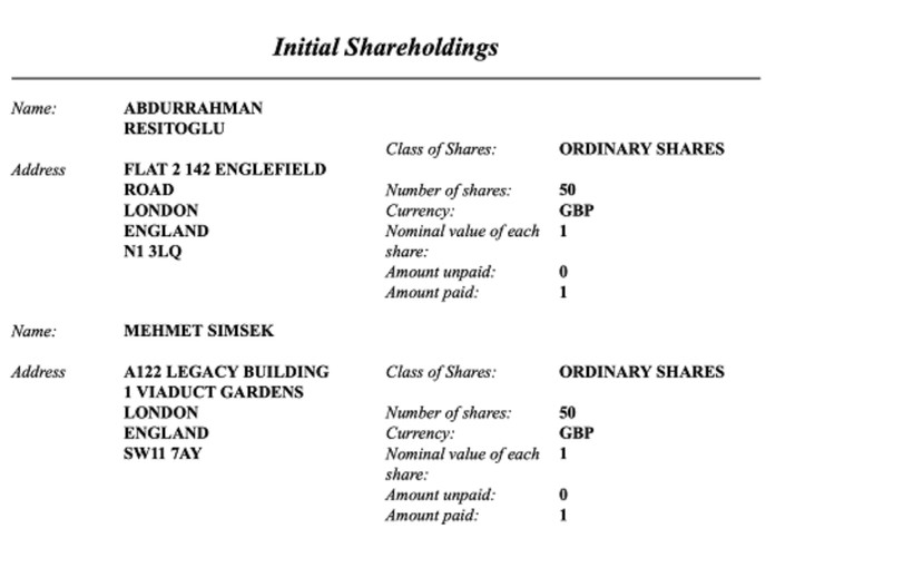 Mehmet Şimşek, AKP’deki bakanlık mesleği bittikten sonra Londra’ya dönmüştü. 5 Ağustos 2021 yılında Reşitoğlu ile yüzde 50-50 iştirak ile London RS Proporties isimli şirketi kurdu. Şimşek yönetim kurulu üyeliğinden 9 Ağustos günü ayrıldı. Lakin ticaret sicil kayıtlarında paydaşlığı hala ‘aktif’ görünüyor. London RS Proporties’in tek yöneticisi olarak ise Abdurrahman Reşitoğlu kayıtlı.