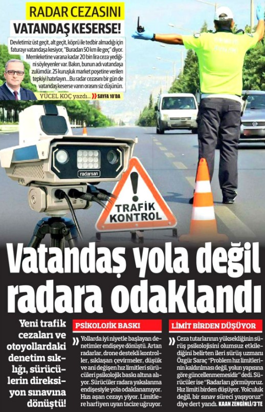 TÜRKİYE GAZETESİ MÜELLİFİ YÜCEL KOÇ: “RADAR CEZASINI VATANDAŞ KESERSE!”