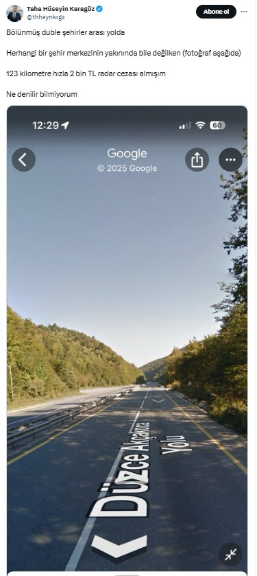 Karagöz, Düzce Akçakoca Yolu’nda 123 kilometre süratle giderken aldığı ceza sonrası yeni bir paylaşım yaptı. Şehirlerarası yol olduğunu ve kentten uzak olduğunu söyleyen Karagöz şunları söyledi: