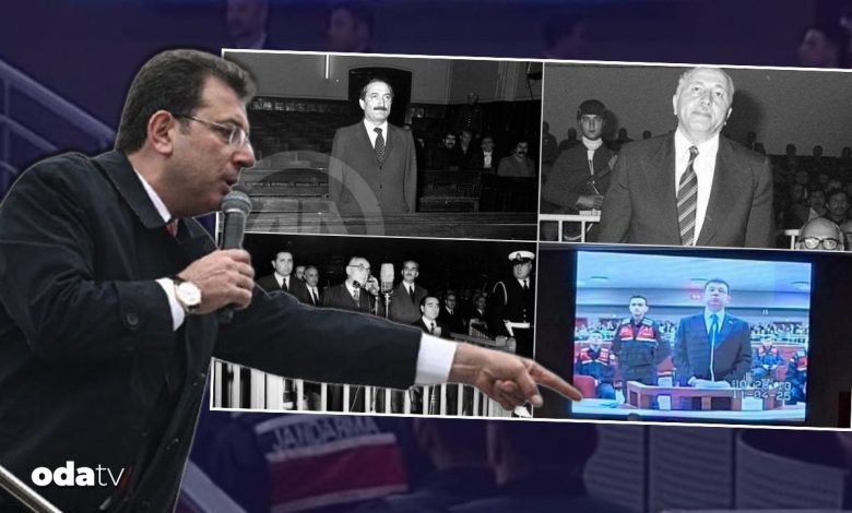 İmamoğlu’nun toplumsal medya hesabından eski Başbakanlar Bülent Ecevit, Necmettin Erbakan ve Adnan Menderes ile Türkiye’nin üçüncü Cumhurbaşkanı Celal Bayar’ın sanık kürsüsünden savunma yaptığı fotoğrafla İmamoğlu’nun fotoğrafı birlikte paylaşıldı ve yayınlanan iletide şu sözlere yer verildi:
