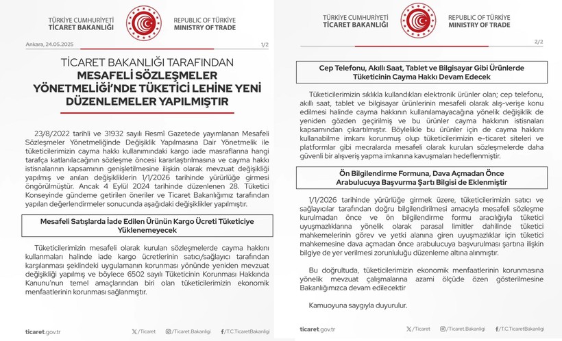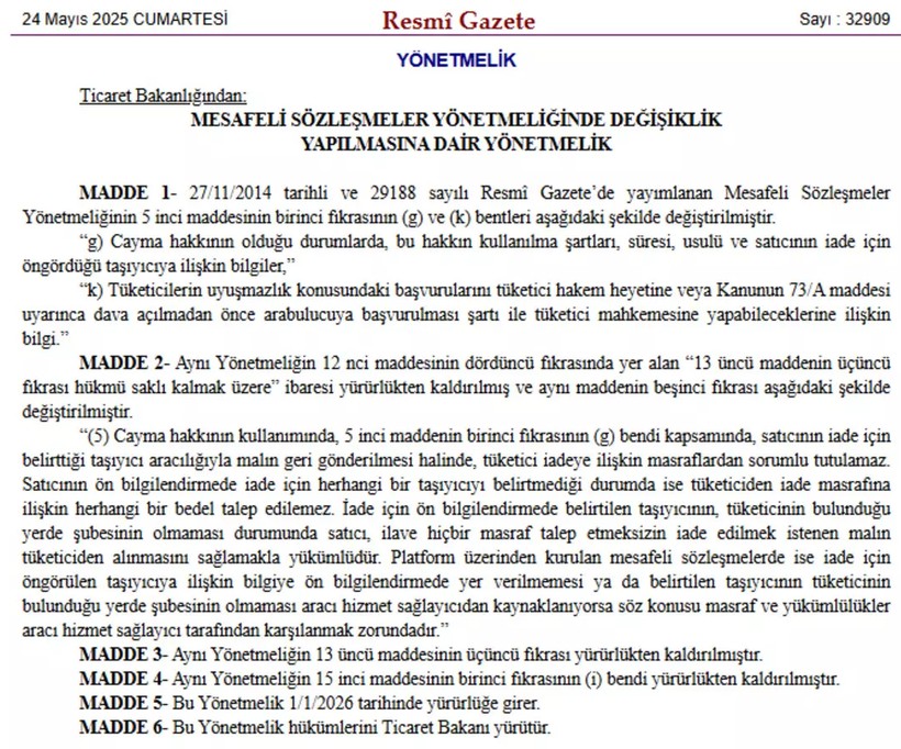 Ticaret Bakanlığı tarafından yapılan bu düzenlemeler, 1 Ocak 2026 tarihinde yürürlüğe girecek. Sozcu.com.tr’den Merve Kapan’ın derlemesine nazaran, e-ticaret ve uzaktan alışveriş süreçleri, yeni düzenlemeler çerçevesinde daha inançlı ve adil bir hale gelecek.